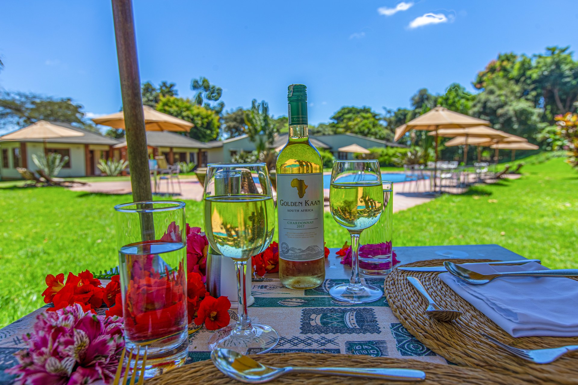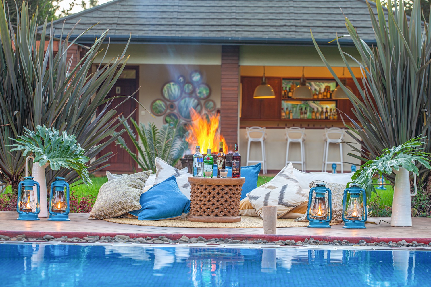 The lodge is known for good dining and lounge areas, a swimming pool, and a calm countryside atmosphere. Many travellers like the feeling of being on a farm style estate while keeping safari access easy.